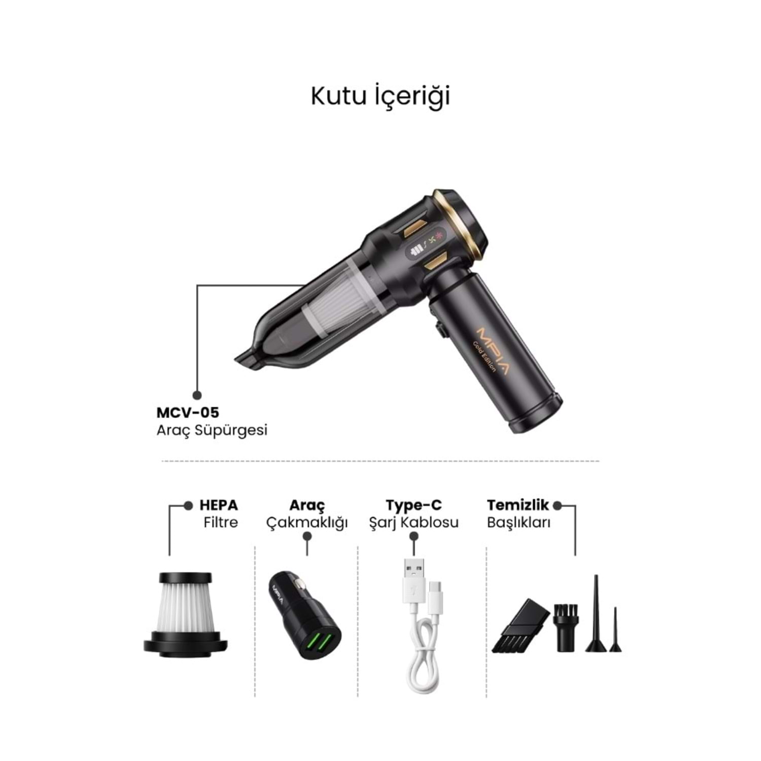 - 10 IN 1 ( Ev, Araç, Ofis, Dışarda Kullanıma Uygundur) - 20000 pa - 7600 mAh Pil - Güç: 180W - HEPA Filtre - El Feneri - 0.5L - 30 Dakika Sürekli Çalışma Süresi - 90000 RPM - USB / TYPE-C