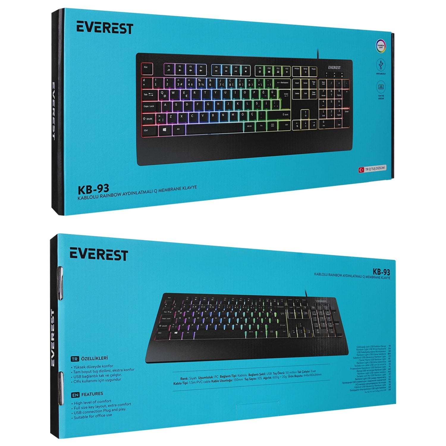 Everest KB-93 Siyah USB Q Rainbow Aydınlatmalı Multimedia Klavye